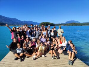 „Ist es möglich, im September noch Sporttage an einem See zu verbringen, ohne – sowie im vorigen Schuljahr um dieselbe Zeit am Hallstätter See – zu (er)frieren?“ Nun haben wir die Antwort: Ja! Am Mittwoch, dem 17. September, startete für die Klassen 5G und 5R eine dreitägige Reise nach Kärnten, genauer gesagt nach Egg am Faaker See. Nach einer zweistündigen Busfahrt – begleitet von viel Musik und Snacks – kamen wir in unserem Quartier, dem „Naturel Hoteldorf Seeleitn“, an. Nach der Zimmereinteilung erkundeten wir die Anlage, die mit einem Beachvolleyballplatz, einem kleinen Fußballplatz, zwei Tischtennistischen, einem kleinen beheizten Pool und – das Beste von allem – einem Steg mit direktem Zugang zum Faaker See ausgestattet war. Nach dem Mittagessen ging es zum Kanu- bzw. Kajakfahren. Vor der Nachtruhe verbrachten wir unsere Freizeit mit Schwimmen, Volleyballspielen und vielem mehr. Am nächsten Tag machten wir unsere einzige „Wanderung“ (4 km) auf die Taborhöhe. Oben angekommen erwartete uns eine atemberaubende Aussicht auf den Faaker See. Danach ging es erneut zum Kanu- oder Kajakfahren. An unserem letzten Tag in Kärnten hatten einige Schülerinnen und Schüler den Plan, mit Kleidung in den See zu springen – was sie dann auch in die Tat umsetzten. Vor der Heimfahrt sprangen wir noch ein letztes Mal ins Wasser, spielten Volleyball, aßen Pizza und traten schließlich die Rückreise an. Abschließend können wir sagen, dass diese Sport- & Erlebnistage das Motto „Zusammen.Wachsen“ definitiv erfüllt haben. Julia Hacksteiner 5G, Marie Dygruber 5G