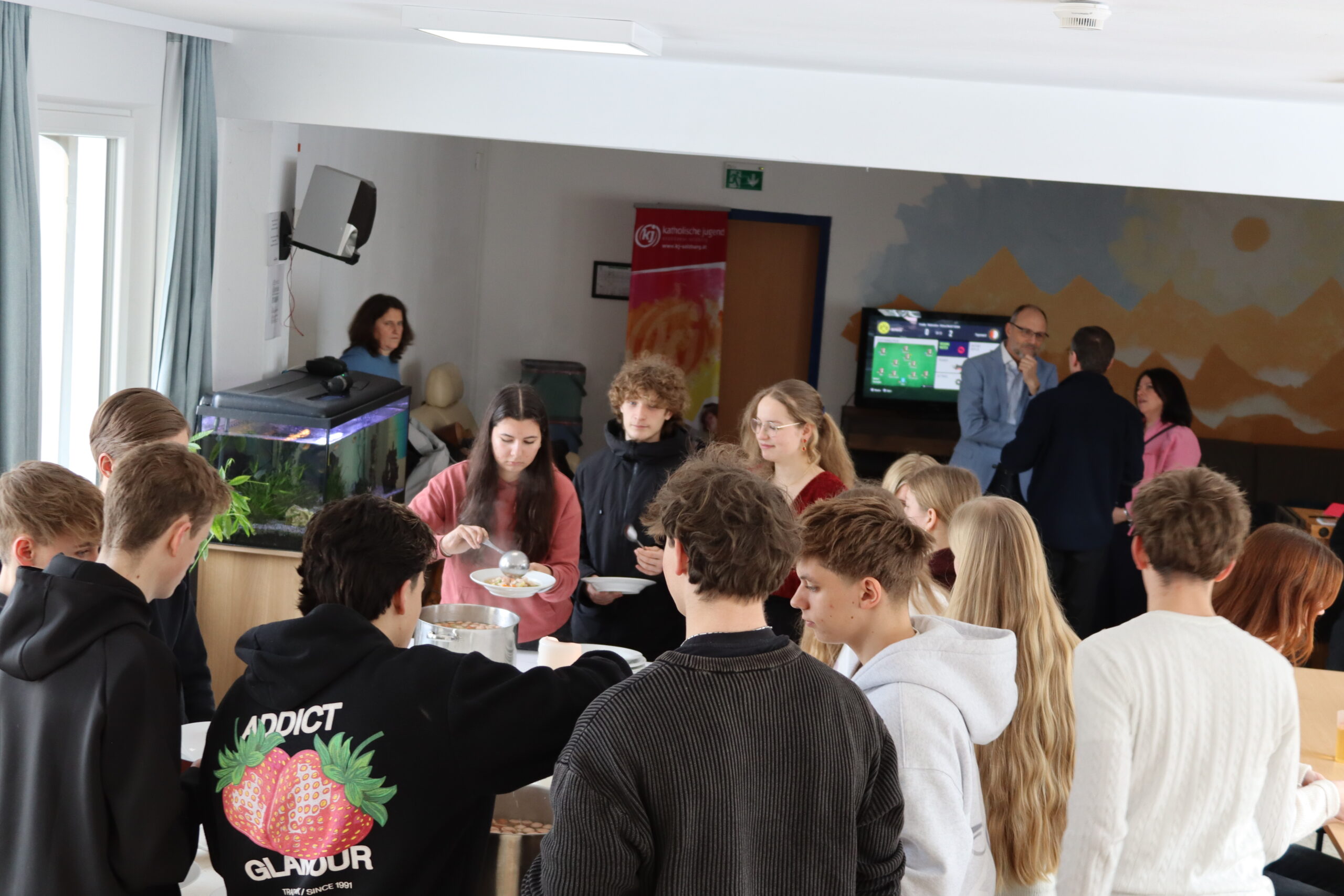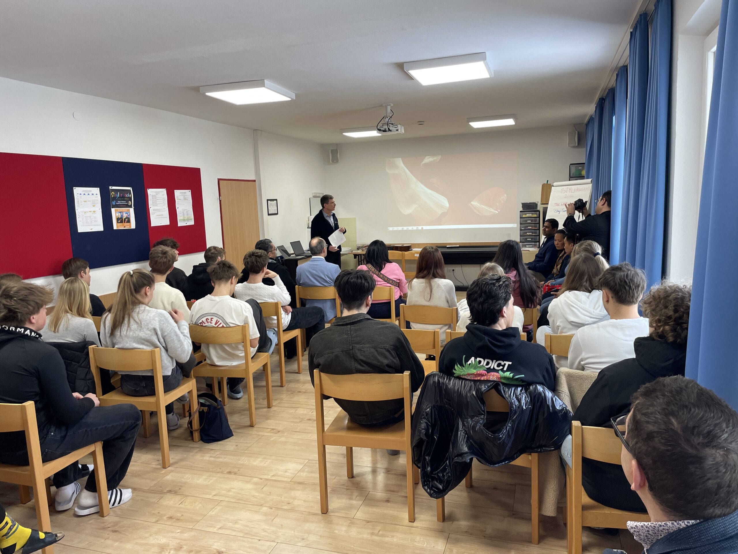 Am Donnerstag ging auch der Generalvisitator aus Rom in die Klassen mit. Die 7. Klassler durften spannende Berufungsgeschichten von fünf Ordensmitgliedern am Donnerstagvormittag mit einem abschließenden gemeinsamen Mittagessen, Am Abend feierliche Janssen‑Freinademetz‑Feier mit musikalischer Gestaltung durch das SteyleWoche‑ Team.