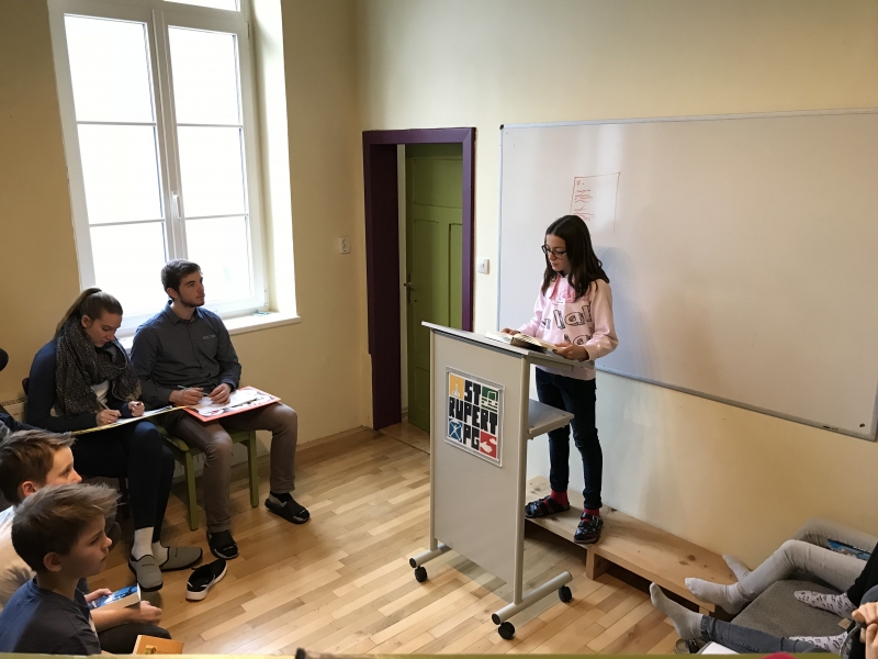 Kurz vor Weihnachten fand der erste St. Ruperter Vorlesewettbewerb in der Schulbibliothek statt, bei dem die Schülerinnen und Schüler der 1A und 1B Klasse ihr Lesekönnen unter Beweis stellen durften. Vor einer Jury, bestehend aus Lehrern und Schülern der Oberstufe, mussten sie zuerst aus einem vom Lehrer gewählten Pflichttext und anschließend aus dem selbstgewählten Lieblingsbuch vorlesen.